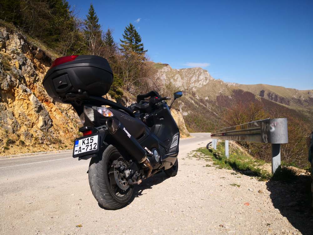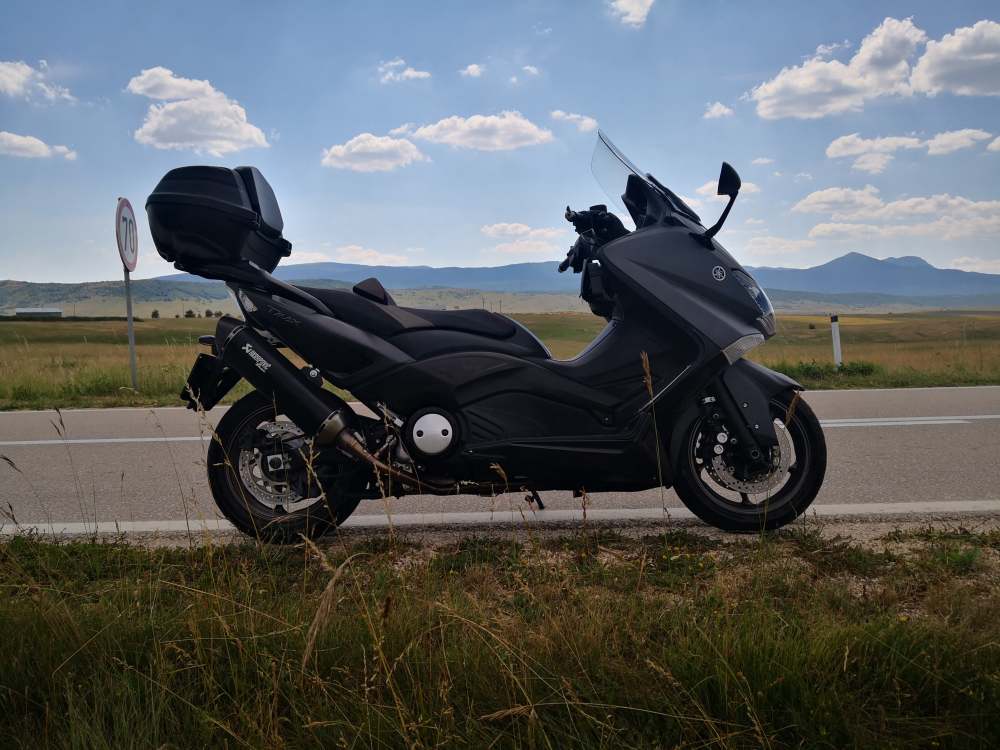 Nakon par godina tjeranja talijanskih fensi šmensi skutera (prvo Piaggio Bev Cruiser 250 pa 500cc), prošle godine sam se odlučio za malo ozbiljniju verziju skutera. Iako je u igri bila i Integra 700/750, prilika je izletjela i dotjerano je ovo. TMAX 530 ccm, 2012 g. sa nekih 30k km pređenih km, urađenim servisom zamjene remena, novim gumama. Prvi upgrade je bio, kofer , drugi Akrapovic. Uglavnom, zbog para klipova, dosta uglađeniji rad već u mjestu, a naravno i u samoj vožnji, solidno ubrzanje, dobre kočniceprilično udoban i konforan (iako sam visok 190 cm)... Sa prošlim dvotočkašima osim nekih prigradskih vožnji, nije bilo ozbiljnijih izleta, dok smo prošle i ove godine pravili nekoliko jednodnevnih vožnji po cca. 400 km. S obzirom da sam u centralnoj Bosni (planinskom dijelu), radi se uglavnom o vožnjama sa dosta planinskih i viših prevoja, te twisti puteva sa malo ili nikako vožnje po autoputevima ili brzim cestama. Uglavnom jedan prilično kompletan dvotočkaš i ako mogu reći bez većih primjedbi. Slijedeće što bi volio isprobati je svakako NC 750x (na forumu već prisutan), što zbog nešto većih gabarita, to zbog DCT-a i većih točkova.