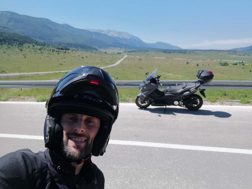 Upravu si. Ako nije R na 4 točka, onda barem R skuter Osim jedne duže ture odvožene sa Z750 Kawasaki naked modelom (koja mi je iskreno više bila smor, ali nisam imao drugi izbor motora kod jedne posjete na Swiss alpama), nemam nekog previše iskustva sa nekim drugim tipom motora, niti sam neki baš zagrženi bajker pa da me mjenjanje brzina i neke veće brzine pale. Hoću da imam finu poziciju sjedenja, kakvu takvu zaštitu od vjetra, solidnu snagu i ubrzanje, te možda nekad i DCT i jednostavno da uživam. I mogu slobodno potvrditi da ovaj skuter to uglavnom zadovoljava. Jedna slikica sa jednog pass-a. Priroda, okruženje, ceste, nevjerovatne.