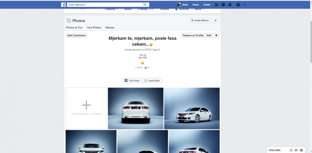 15. Ok, prošlo je 2000 km od kupovine, vreme je za neku rekapitulaciju. Auto preregistrovan na mene, full kasko standard, vozi ga i žena i ja poprilično. Potrošnja bez da gledam, da se stiskam, ovo ono, 10-12 litara. Oduševljen sam autom, jer K24 nepoderiv, u made in Japan Hondi koja ima 96k km na satu, ovim tempom vožnje, znači da ću barijeru od 200k km dostići za jedno 10 godina. Do tada, trouble free vožnja. Udoban, leži odlično, ima mesta napred top, nazad taman za decu (kad porastu, menjaćemo ga za neki SUV). Tiho radi, odmara u vožnji, a kad zatreba da se poprangija, klackalice na volanu završe posao. Jako volim što je stari automatik, znači redovno održavanje i nema glavobolje, ne patim od munjevitog odziva na gas. Ono što mi se jako sviđa jeste što je prekrcan opremom, ima doslovno sve što treba, od grejača sedišta do memorije sedišta. Rale ga je već poprilično unapredio, tako da meni ostaju samo detalji da bi ga dodatno estetski oplemenio i modernizovao. Ono što je sigurno - nikakve mehaničke modifikacije neće biti (ništa remap, turbo, kompresor, aždaje u gepeku=. Estetika: - bočni pragovi (Modulo, Type S, itd), videćemo - gornji kačketić (da ne budem najgori od ostale CU bratije sa foruma) - felne za letnji setup: jedna opcija je Kosei K3 7.5 x18" sa distancerima (igraćemo se na zimu, samo da pustim opremu za vulkaniziranje u rad), druga opcija je Lenso 9.0 x 17" crne bez distancera. - parking kamera i kompletan prednji interfejs (da li maska i 2DIN navigacija), ili kompletan Android tablet zamena, videćemo. I to bi bilo to. Dobijem pouzdan auto koji ide uz moj karakter, osvežim ga sa novim tehnologijama i kamerom u rikverc (parking senzori su kul, ali svi ostali Dmax koje vozim imaju kamere, tako da sam se baš navikao), i estetski izgleda sportska limuzina u fullu. Sve u svemu, prezadovoljan sam autom, i bolje je nego što sam očekivao, mnogo bolje.. Čak i kad dođe do 200k km, pitanje da li da je prodajem ili ostavim u firmi da se koristi kao službeno.. I za kraj, gledam nešto svoj FB profil, i naletim na album koji sam okačio pre DESET GODINA, što bi se reklo: ko čeka, taj dočeka..