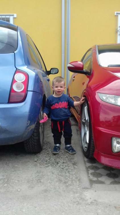 Da ostane u arhivi, skinuo sam mrak na Navaku.. Doduše, bolje motam na offroad stazi pored, ali tek ćemo se terati, vidim da niko više ne sedi u kafani, svi skidaju kile i delove sa Hondi, samo da dosegnu te magične 1.3xxxx Ali meni draža slika, sin ima ukus na tatu po pitanju kola...od celog parkinga, zna se za šta se zalepio.. -