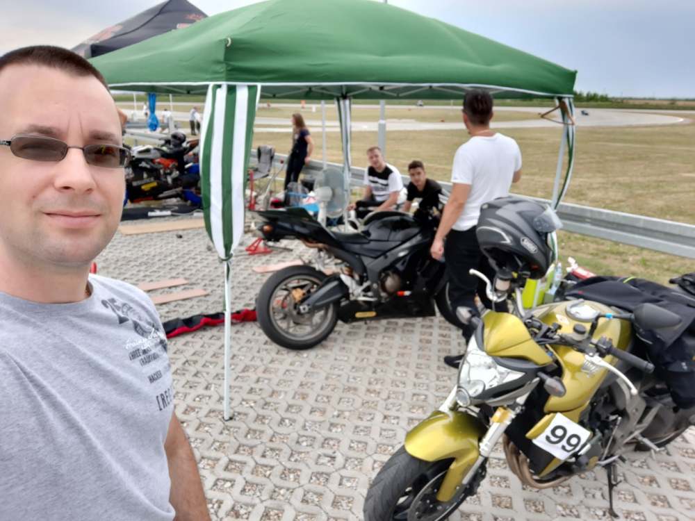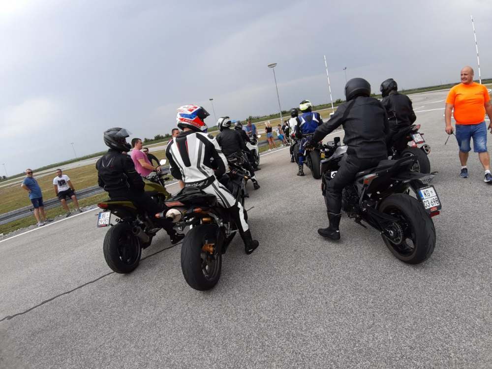 Nedelja, organizovan td, kasno se prijavih pa je bilo pitanje ocu li terati ili ne, medjutim upadoh jer je neko odustao. Vreme ne obecava ali da vozimo... Prvi stint staza poluprasnjava, malo uvozavanja i sl...polako i pametno...vreme kruga laganom voznjom kao najbolje sa proslog navaka...super. Nisam se ni zagrejao. Odvozaju ovi brzi sta imaju, krene moja grupa, i posle drugog ili tre eg kruga krece kisa...nista od voznje...sacekamo da prodje...vozi kome se vozi...reko ocu necu lagano opet, poluvlazno, ma reko sto da ne...izadjem provozam se, spustim svoje vreme 5sec dole i to je to. Ja prezadovoljan. Motor se super ponasao, sto bi rekli idenje i kocenje ko pucka. Sledeci td malo vise zavrcem amorte napred jer u nekim momentima malo plese. Ima prostora goomila za vreme da ide dole no polako i pametno. Sledeci put cu uplatiti i pre podne i popodne. Jer taman se covek zagreje kad ono kraj, realno 3x20min je bas bas malo... Koja slika od burazera fotografa, a kad stignu od ovih sa navaka, kacimo. Pozdravlja Sale Markez sto dr. Smiga kaze