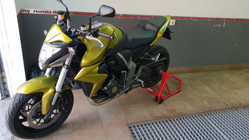 Pa ovako, totalno neocekivano, totalno spontano, totalno iznenadjujuce, dosla u vlasnistvo nova hondica pre neka dva meseca. Ljubav rodjena davno na navaku na honda adrenalin day-u kad sam prvi put seo na nju, te se ukazala prilika posle dosta godina da bude u mom posedu. Fenomenalno ocuvan primerak, naked, bez ijedne tackice na sebi, 2008 godiste, 32000km na satu, doterana iz svice od vlasnika koji je 66-o godiste. Uz motor dosao tank bag, i scorpion titanium izduv, nove dvokomponentne miselinke. Opravdano izgledom i stanjem malo jaca cena za to godiste i model nije bila problem te je dogovor pao i motorcic pazaren. Direktno na ime kupca registrovan odmah po kupovini. Trenutno je bitno da je u vlasnistvu, te polako valja uci i u polaganje za A kategoriju i lagano uzivanje u motoru. Dosta ljudi dosta misljenja dosta glupih komentara tipa "jesi li kupio da pogines", no ne obazirem se jer je kupljen u godinama u kojima je mozak malo mirniji nego pre 10-15god. Dakle kupljeno iskucivo za uzivanje i sredjianje i posvecivanje laganom detajlingu za lecenje zivaca od monotone svakodnevnice. Od R-a devete gen se odustalo jer valjan primerak kod nas bi na misice izasao nesto malo manje od 30k e, sto je mnogo trenutno te je razum preovladao emociju, i za dosta manje para ispunjena dugogodisnja zelja da ne kazem emocija. Takodje tu je doprinelo uzivanje u accordu koje spustilo nivo adrenalina u krvi za nekih 300% posle civic-a te razlog vise kao izgovor da ne jurim r-a (a i mladja je blizu te uvek mogu da mu nalegnem kocnice bolje no sto on to uradi ). Imam slike sa oglasa od motora, a za koji dan okacim i par sa tablicom. O vozljivosti, kocnicama i ponasanju pisem u septembru, do tada vrtim pedale Toliko od mene za sada, jedino mesto i forum gde ce motorcic biti predstavljen je ova tema, te lagano cu udarati refresh kad se pojavi neka novina.