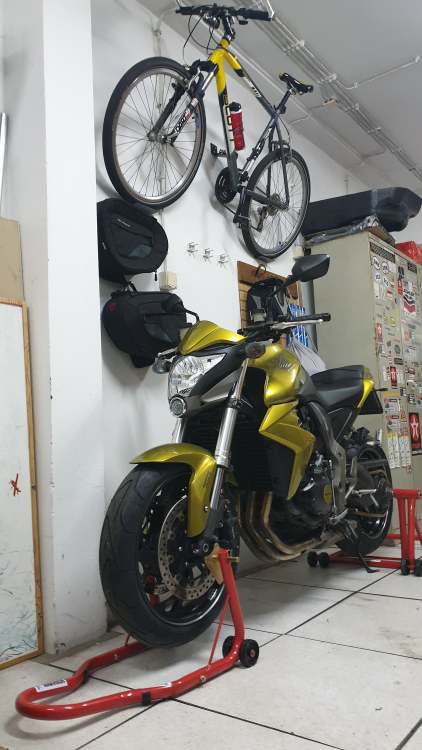 Da se oglasimo, u ljubavi i dalje, pogledamo se svaki dan, bar na 15sec. Dignut je bio na stendere ali zbog neizmerne zelje brata rodjenog da odradi zamenu jeftinog oem karbona tj zastite katalizatora u karbon kevlar kombinaciju, skinut je bio sa stendera na par dana. Evo kako je izgledalo, kako se radilo i na kraju kako je ispalo. Uz boju motora ispalo kao dobitna kombinacija. Pozdrav sa visine do aprila I mali reminder na proslu sezonu uz koju slicicu