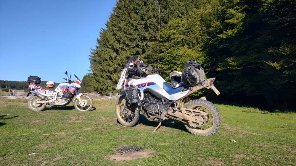 Zbog nekih nepredvidjenih situacija nazalost ispalio sam trio fantastiko i ne odosmo u Sloveniju, prolaze tako dani, grickam nokte i jedino ostaju u kartama kratki izleti, ne drzi me mesto.. Rumunija na dvodnevnom redu, 1100km brza org dva Transalpa 750. Sale iz Kg i ja poranili i preko Dunavske, Djerdapa, Dobrete, Targu Jiu na 67A Transalpinu, nocili u Petresti. Kanjon Boljetinske reke Djerdap Stizemo u visine Smestaj je bio top, upoznajemo tu i mnogo gotivnu ekipu matoraca iz Spanije koji vrte 20 dana turu po Evropi Jutarnja kafa i gas kroz rosu Sve do ove tacke sam vozio ranije, a onda idemo na stari put DN66A koji je makadam kroz sumu i pored jezera, fantazija jedna. Preko Banje Herkulane i puta 57B idemo lagano kuci prepuni utisaka. Definitivno treba imati overland motor