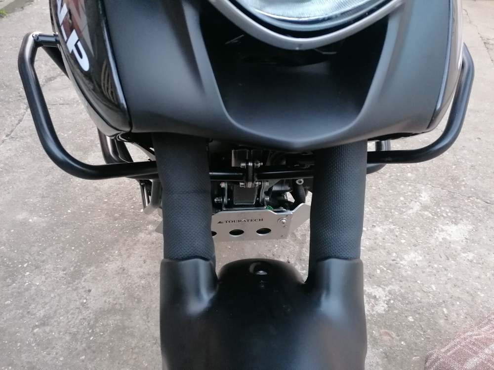 Suspleh je od alu ploce, sve to dole nema vise od 1kg. Crash barovi su tezi ali recimo da sve to zajedno nije vise od 6-7kg, sa nosacima bisaga. Kad je stigao poskidao sam sve sipke i plastike zbog servisiranja, taman da vidim sta ima ispod i da se upoznamo