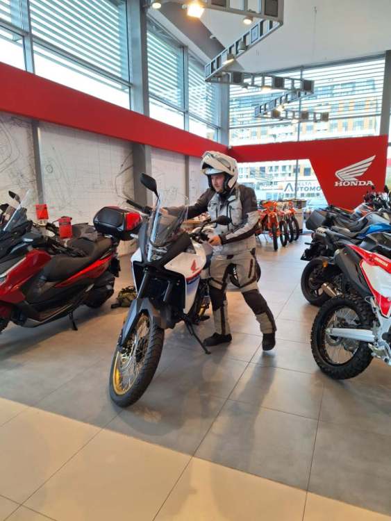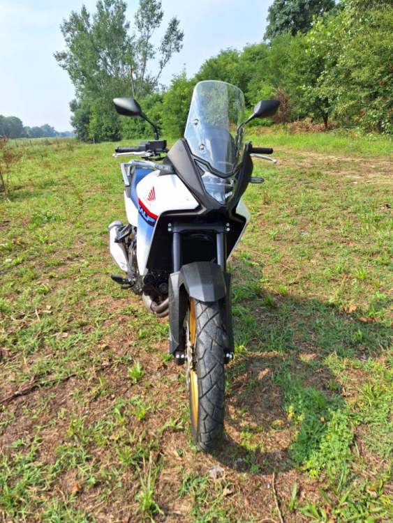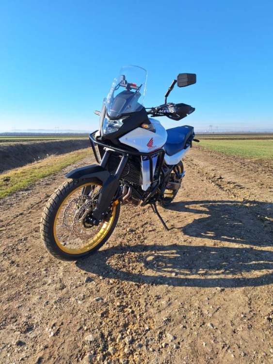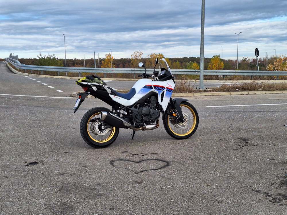 Hvala ekipa, tokom zime bar razrada Tek je poceo da broji Letos sam imao prilike da se upoznam sa njim, kada su pristigli u Deltu. Paralel twin, 755ccm, 92ks, 75nm, 21/18inca tocak, 200mm hoda, 208kg natankan, 6 brzina manuelni, el paket (el klapna, modovi voznje, podesavajuci displej, rezimi rada ABS-a, TC itd...) full LED rasveta, dupli 310 diskovi napred 260inesto nazad.. Slike sa testa u avgustu: Cekam da stigne u deltu quickshifter i grejaci rucica (to sam dobio u paketu sa motorom) a porucio iz DE Hepco&Becker set crash barova, valja ga zastiti.