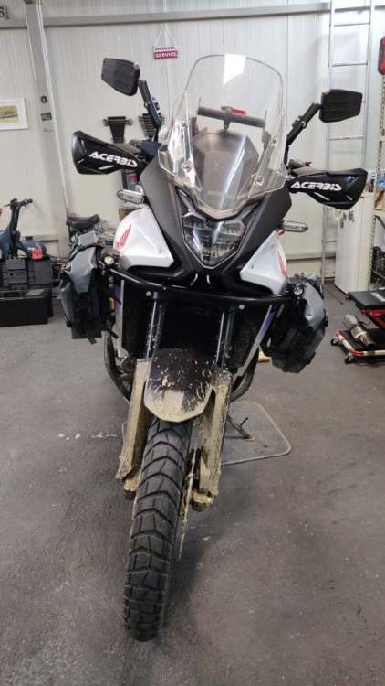 Meto fabricki QS, grejace i 12v steker. Hepco&becker crash barove donje i gornje. Acerbis stitnike ruku/kormana. Deflektore za vetar oko vizira, konzolu za navigaciju, sklopive retrovizore, kratki nosac tablice. Uzeo i set torbi, sve sto treba za put sada ima.