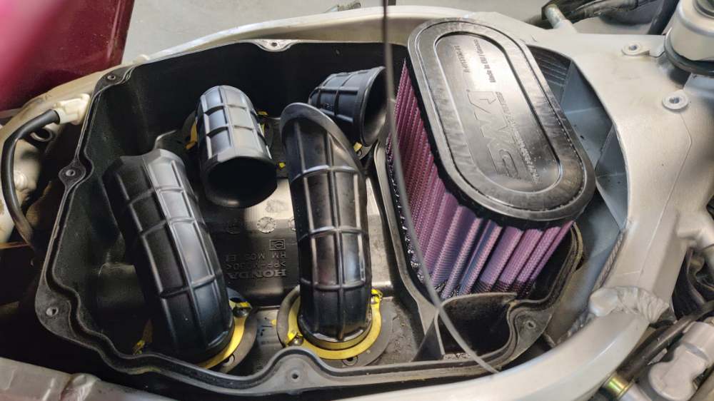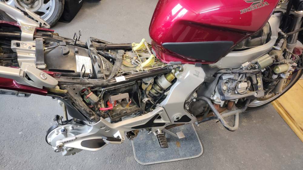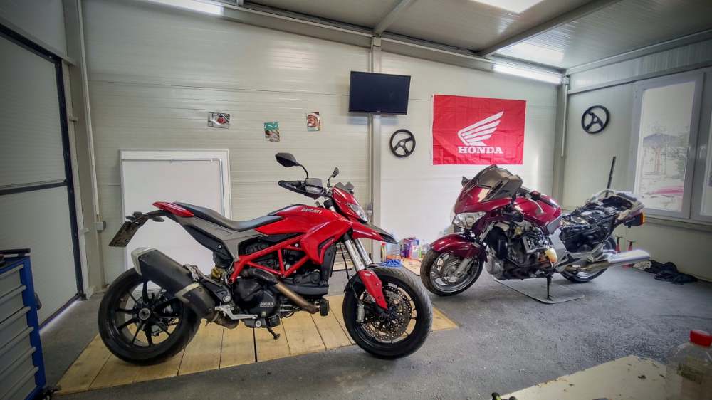 Svasta uradjeno kako sam stizao, napravicu na kraju popis svega, zamenjeno potrosno i pretresen kompletno. Par slika: U medjuvremenu je bilo jos priprema za sezonu, na NC set prenosa i gume, na Dukatiju skidao klapnu sa izduva.